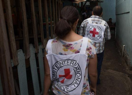 Personnel from the International Committee of the Red Cross (ICRC) during a humanitarian mission
