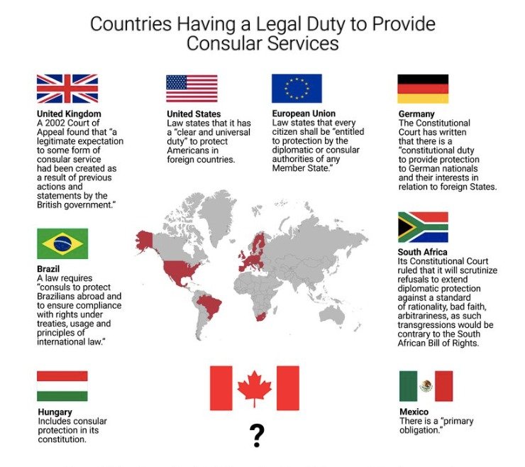 By contrast, countries including the United States, the United Kingdom, Germany, Brazil, South Africa, and at least 28 other nations have enshrined consular protection for detainees in federal law. Canada has not.