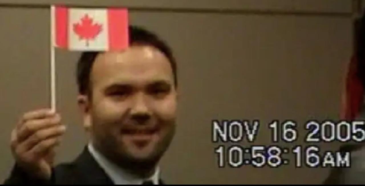 Huseyin Celil, pictured in a still from a family video, at his citizenship ceremony on November 16, 2005.